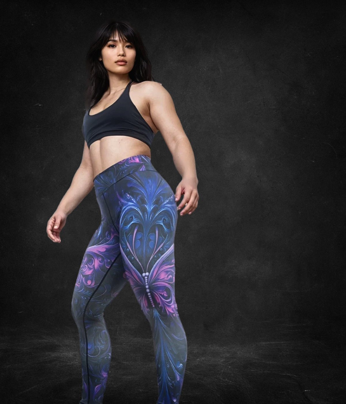 The STING LIKE A GRRRL NEXT LEVEL LEGGINGS fuse gothic futurism with alien wings—a butterfly, but sharper, darker, stronger. A graphic ode to Ali’s line, rewritten for the women who train, fight, and refuse to shrink. These leggings don’t flutter. They slice. They sting. They carry the beauty of flight with the brutality of impact.